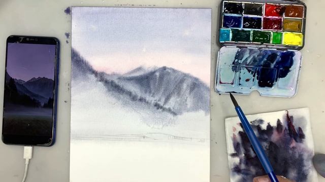 Пейзаж в технике «по-мокрому». Часть 2.