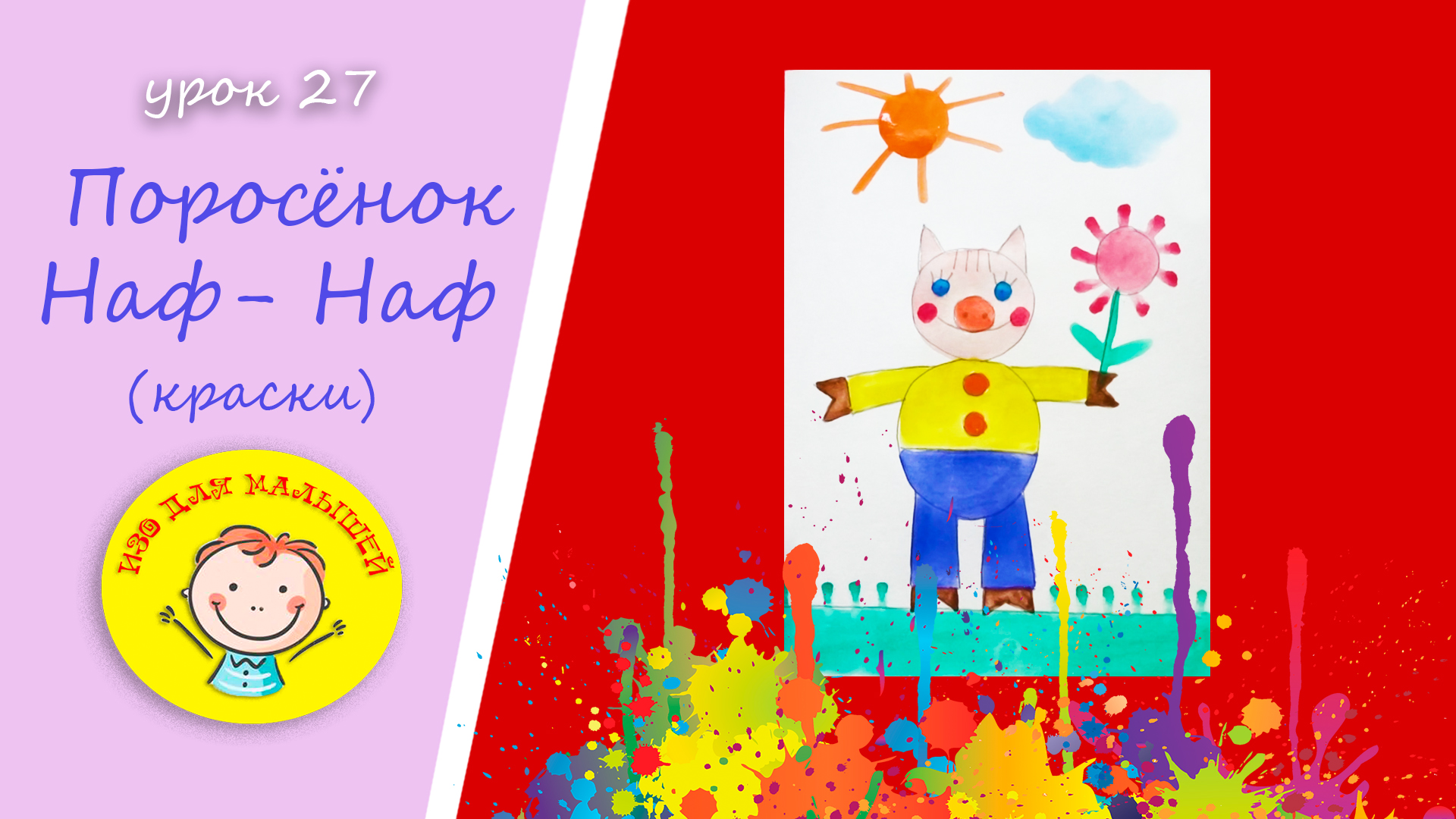 Рисуем ПОРОСЕНКА НАФ-НАФА красками. УРОК 27. Тема: "поросенок Наф-Наф"- краски