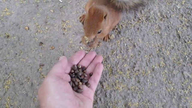 Белке понравился фантик от мороженного