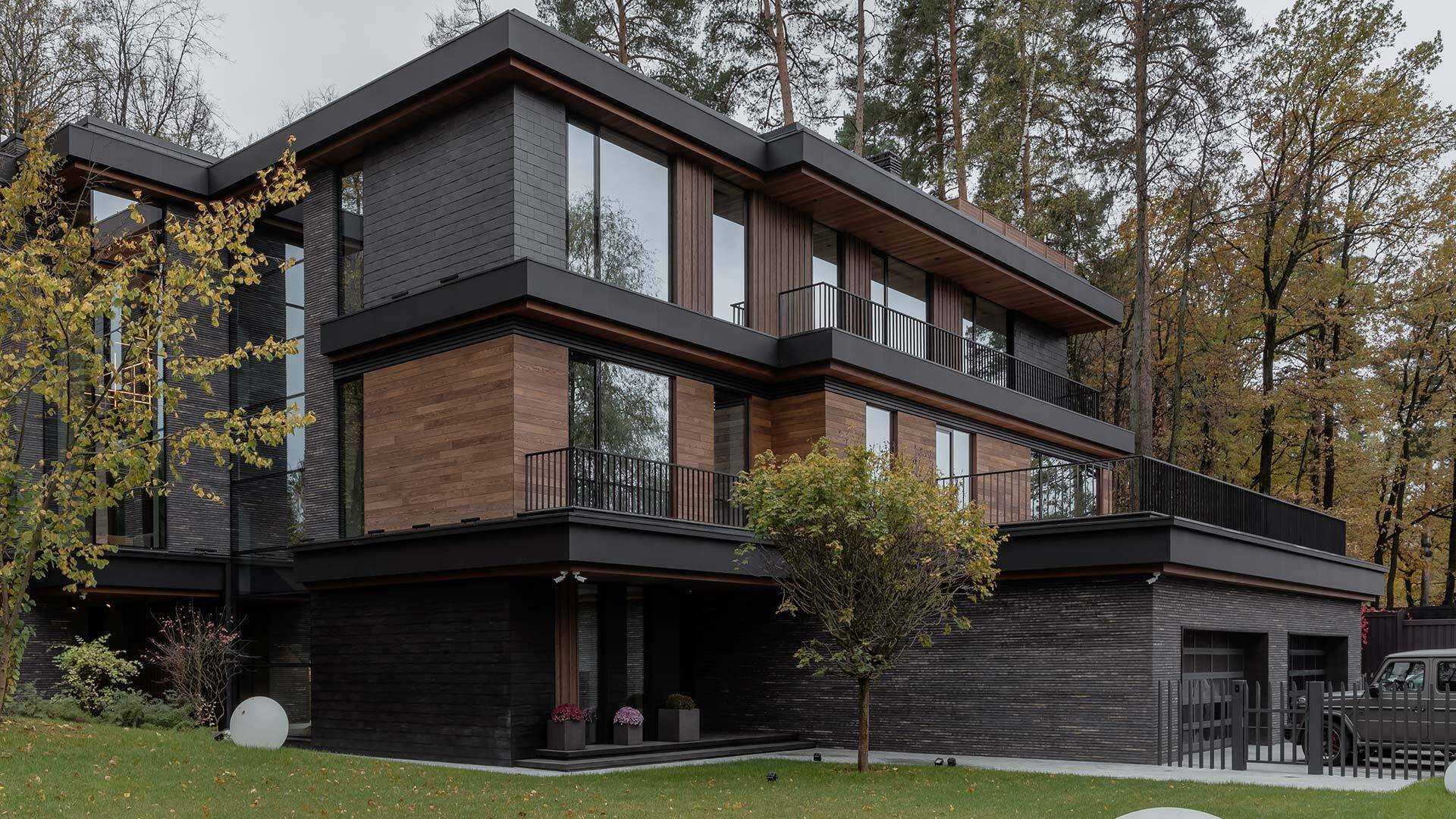 Архитектурное проектирование, строительство, большой загородной резиденции «Forest Residence» выполнила компания ОЛИМПСТРОЙСЕРВИС.