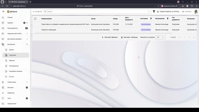 Управление задачами и поручениями в Jet form