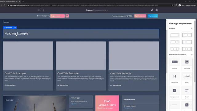 Корпоративный портал Incomand: Конструктор страниц