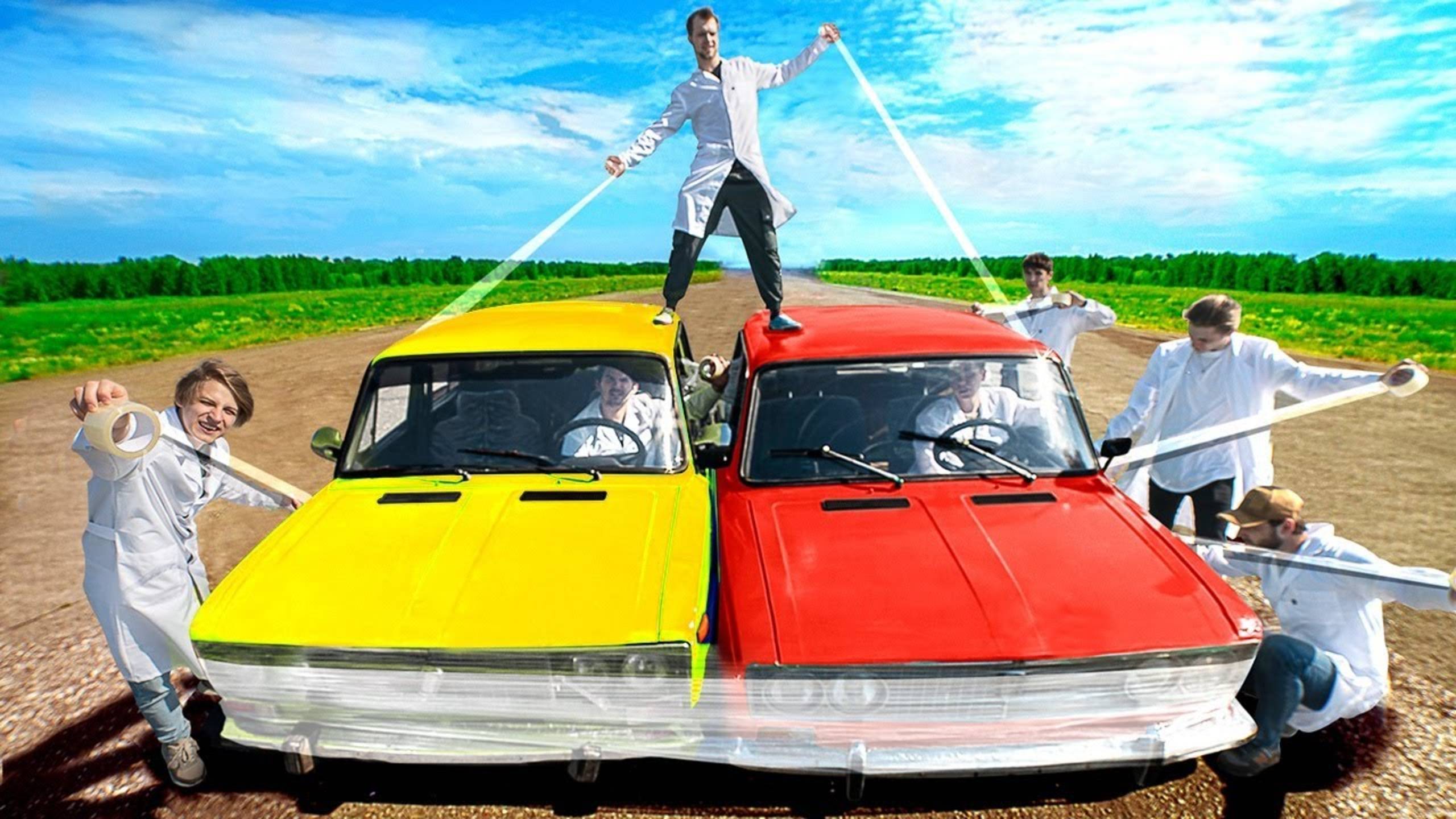 СКЛЕИЛИ ДВЕ МАШИНЫ СКОТЧЕМ И ПОЕХАЛИ!