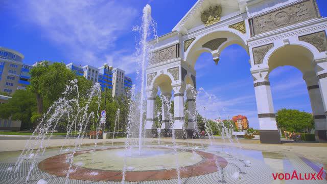 Строительство пешеходного цветодинамического фонтана в Астрахани 2018 4К