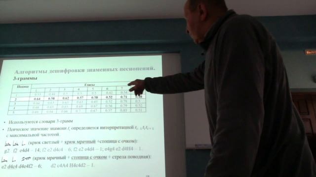 Семинар Сибирской Школы Искусственного Интеллекта - доклад В.Д.Гусева: Алгоритмические аспекты дешифровки древнерусских песенных знамений. Обсуждается использование подхода основанного на N-граммах с комбинированием обучения на параллельных корпусах с обучением без учителя - на примере расшифровки записей древнерусских песенных знамений.