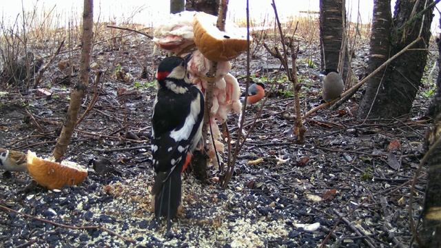 Большой Пёстрый Дятел самец, ест сало, наблюдение птиц 27.03.2023, Великий Новгород