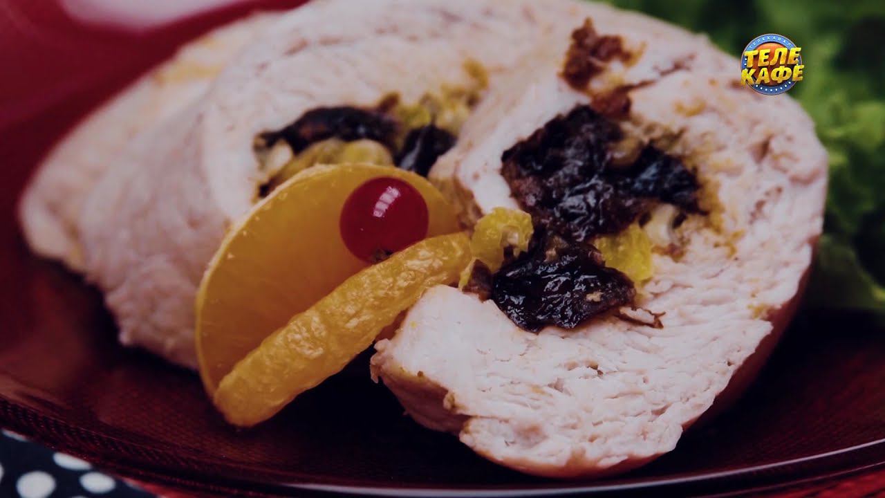 Куриный рулет на пару с мандаринами, черносливом и грецкими орехами