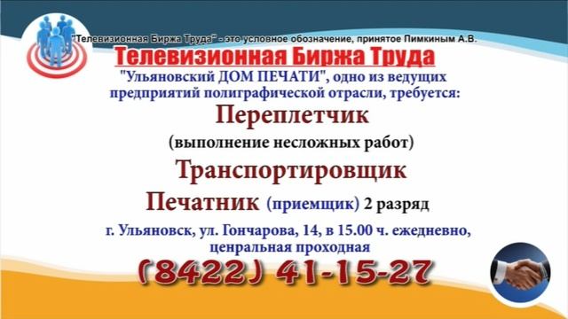 Вакансии и телефоны прямых работодателей в специализированной программе по трудоустройству "Телевизионная Биржа Труда" - г.Ульяновск