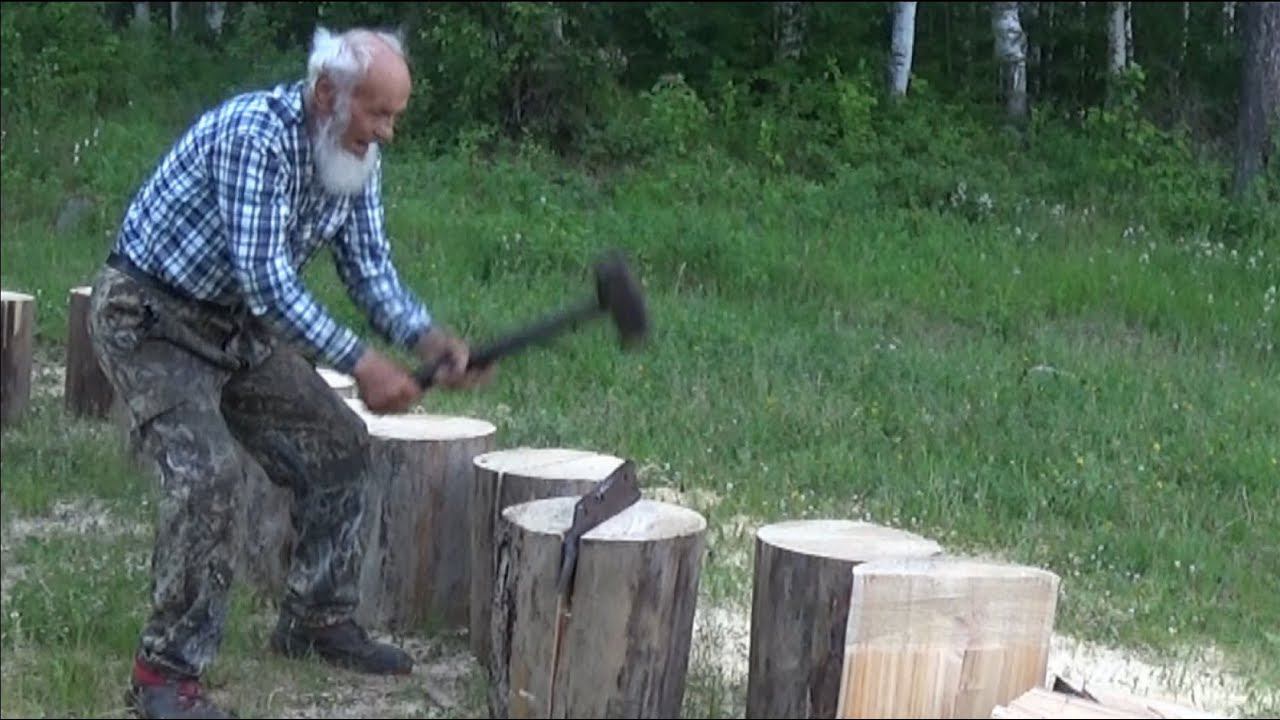 КАК КОЛОТЬ ДРОВА, КОГДА ЗА 85 ЛЕТ? На крученую чурку найдется клин с кувалдою.