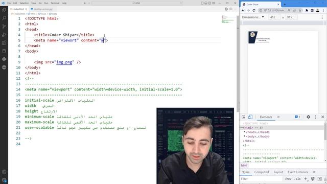 دورة تعلم html كاملة - الدرس 26 | شرح العنصر meta من نوع viewport مع خصائصها