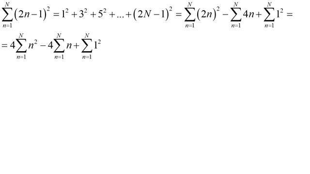 Рассчитана конечная сумма ряда квадратов нечетных чисел.