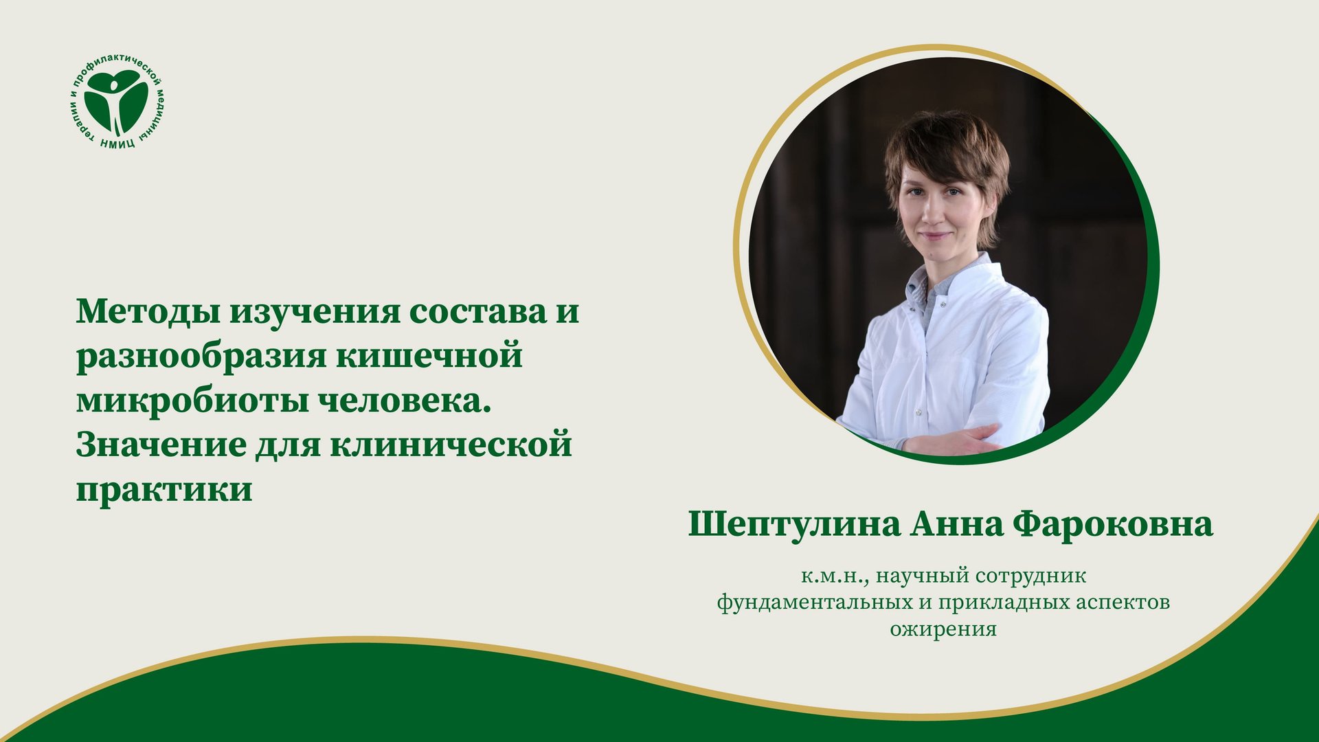 «Методы изучения состава и разнообразия кишечной микробиоты человека. Значение для клинической практики», лекция от 14.04.2022. Лектор: Шептулина А.Ф. — к.м.н., научный сотрудник фундаментальных и прикладных аспектов ожирения ФГБУ «НМИЦ ТПМ» Минздрава России.