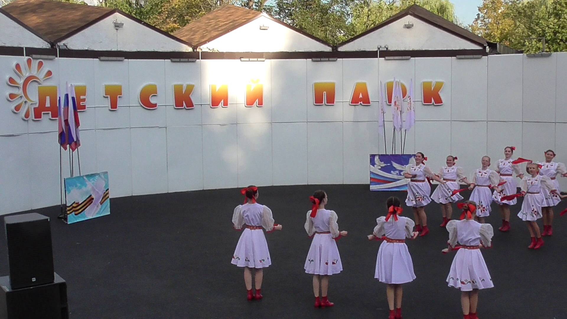 Танцевальный коллектив танцует танец в детском парке. Фестиваль «Орловская мозаика» 2024 год