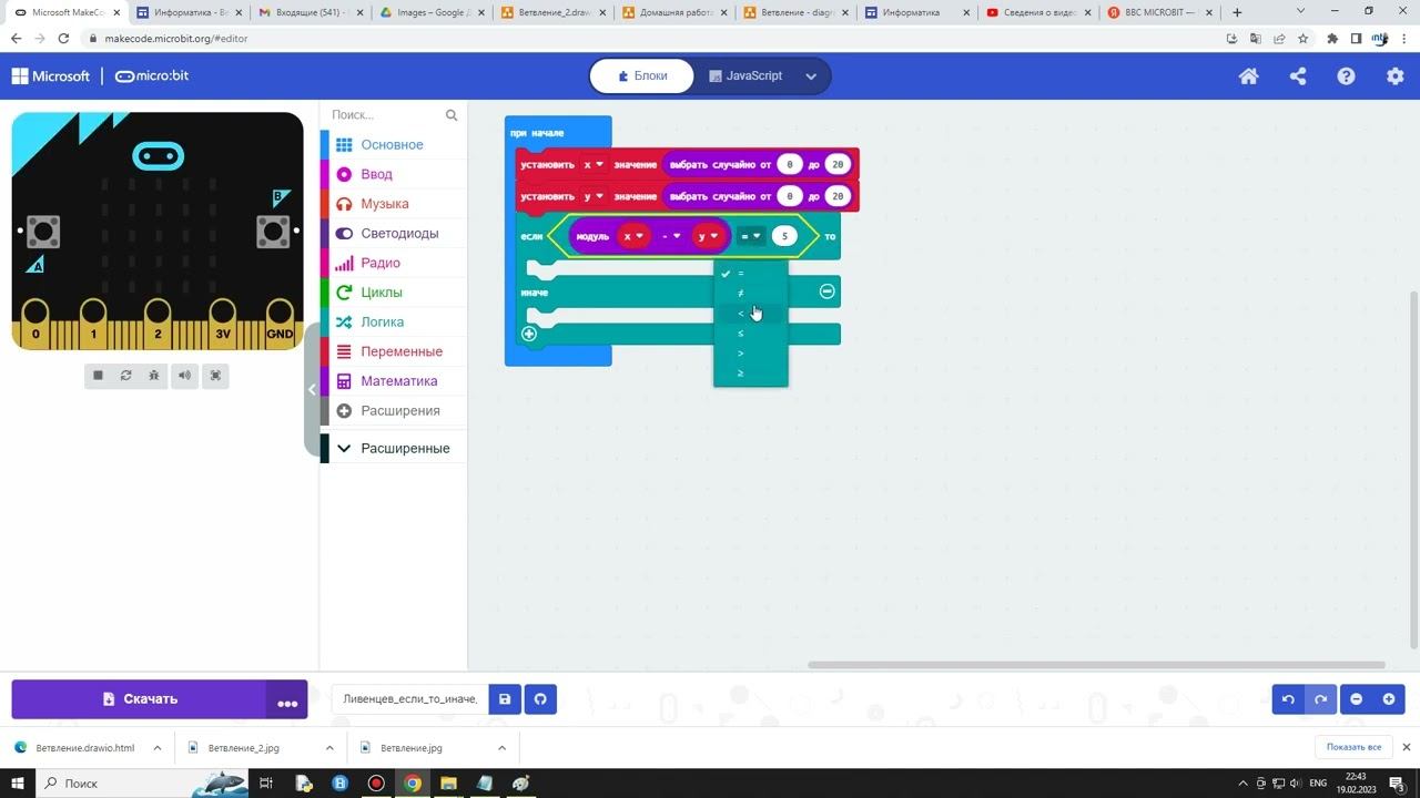 BBC Micro:bit — детский обучающий микрокомпьютер. Как реализовать структуру IF_THEN_ELSE в BBC Micro:bit. Все уроки здесь https://sites.google.com/view/online-bit/5_klass/BBC_Micro_bit/