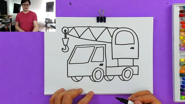 Рисуем Подъемный КРАН машину - поэтапно с РыбаКит