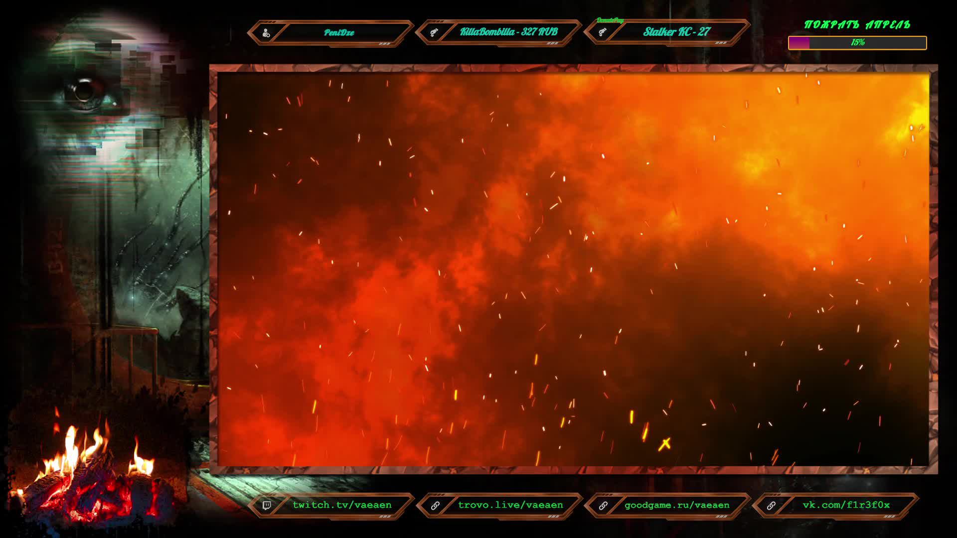Если хотите поддержать меня как стримера - нажмите по данной ссылке https://www.donationalerts.com/r/f1r3f0x Donate for USD, EU all world - https://new.donatepay.ru/@vaeaen Во время стрима ваше сообщение появится на экране, и будет сопровождаться голосовым диктором. Поддержка на прямую: Сбер: 2202 2010 0629 1039 Тинькофф: 2200 7008 4677 0625 Основные каналы: Twitch: https://www.twitch.tv/vaeaen GoodGame: https://goodgame.ru/channel/Vaeaen/ Trovo: https://trovo.live/Vaeaen Дополнительные: Boosty: https://boosty.to/vaeaen VKplay: https://vkplay.live/vaeaen Wasd: https://nuum.ru/channel/vaeaen YouTube: https://www.youtube.com/channel/UCsl3CyRcImUYtWiCgEdvmjQ