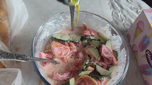 Выпечка и салат из сезонных овощей на обед