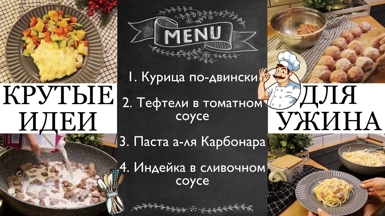 ИДЕИ для УЖИНА??_?• 4 ВКУСНЫХ РЕЦЕПТА_ Курица по-двински?Тефтели??Индейка в сливках?Карбонара.mp4