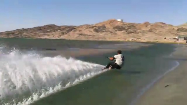 Водный лыжник боится заплывать далеко от берега
