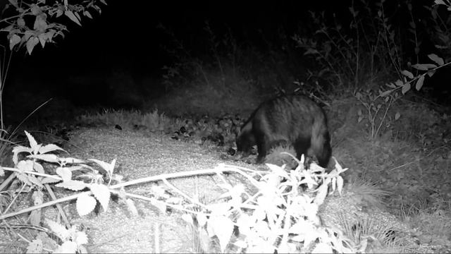 Енотовидная собака. Ночная съёмка на кормушке. Ленинградская область.