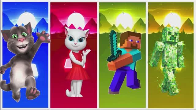 Говорящий Том против Стива из Майнкрафт! 🐈⛏️ Coffin Dance Battle: Анджела и Крипер | Tiles Hop #54