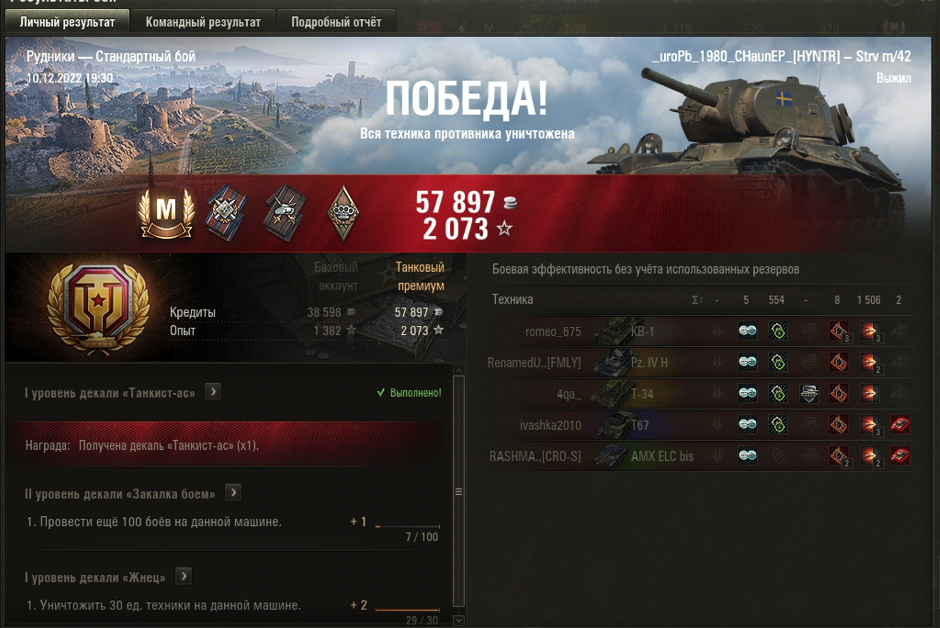 РУДНИКИ МАСТЕР на Strv m/42 ОПЫТ: 921 СУММАРНЫЙ УРОН: 2060