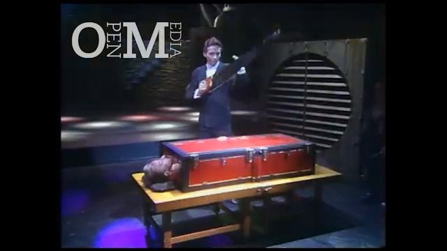 Simon Drake sawing a woman in half The Secret Cabaret Magic show 1990
