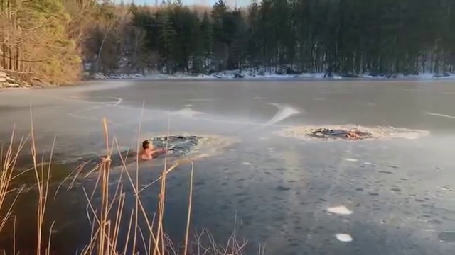 Мужчина со своей собакой спас двух псов на замерзшем озере. #собаки #спасение #лёд #зима #озеро