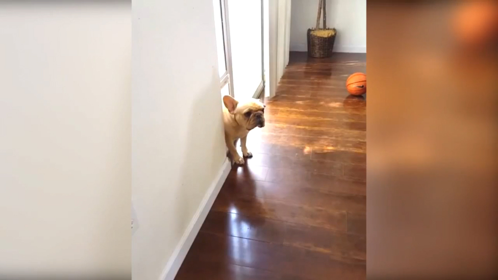 Маленький французский бульдог решил просто уйти от ответственности за испорченную ручку =)