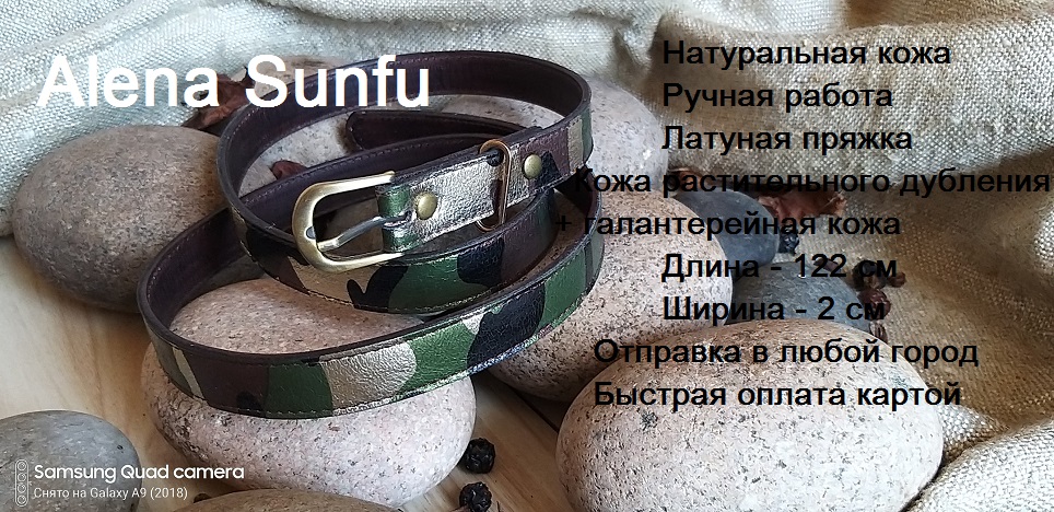 Этот ремень, как и все другие мои работы, выполнен вручную. Сделан ремень из натуральной кожи двух типов. Сверху - камуфляжная золотистая зелено - коричневая кожа. Внутри - оранжевая плотная кожа. Все работы, показанные на моем канале продаются. Отправляю в любой город и в любую страну из Санкт- Петербурга. Мои работы уже представлены на Ярмарке мастеров, на Авито, на Юле. на You tube, на Etsy, на Ebay, на Pinterest , ВКонтакте. Этот видеоканал я завела в связи с последними событиями, и надеюсь, что он станет живым и интересным. Буду рада новым подписчикам, комментариям и отзывам.