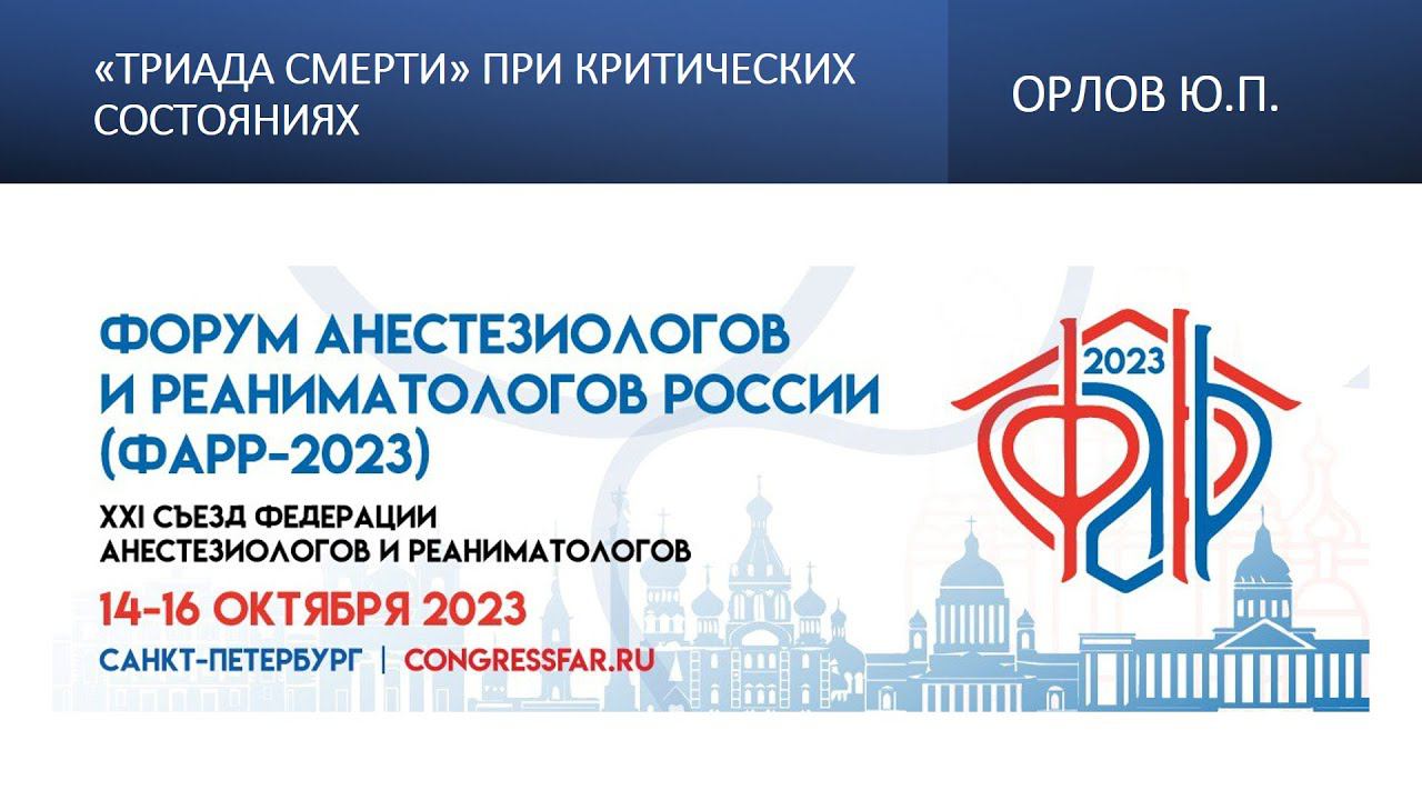Видеозапись ФАРР-2023, XXI съезд Федерации анестезиологов и реаниматологов 14-16 октября 2023, Санкт-Петербург. Юрий Петрович Орлов "«Триада смерти» при критических состояниях"