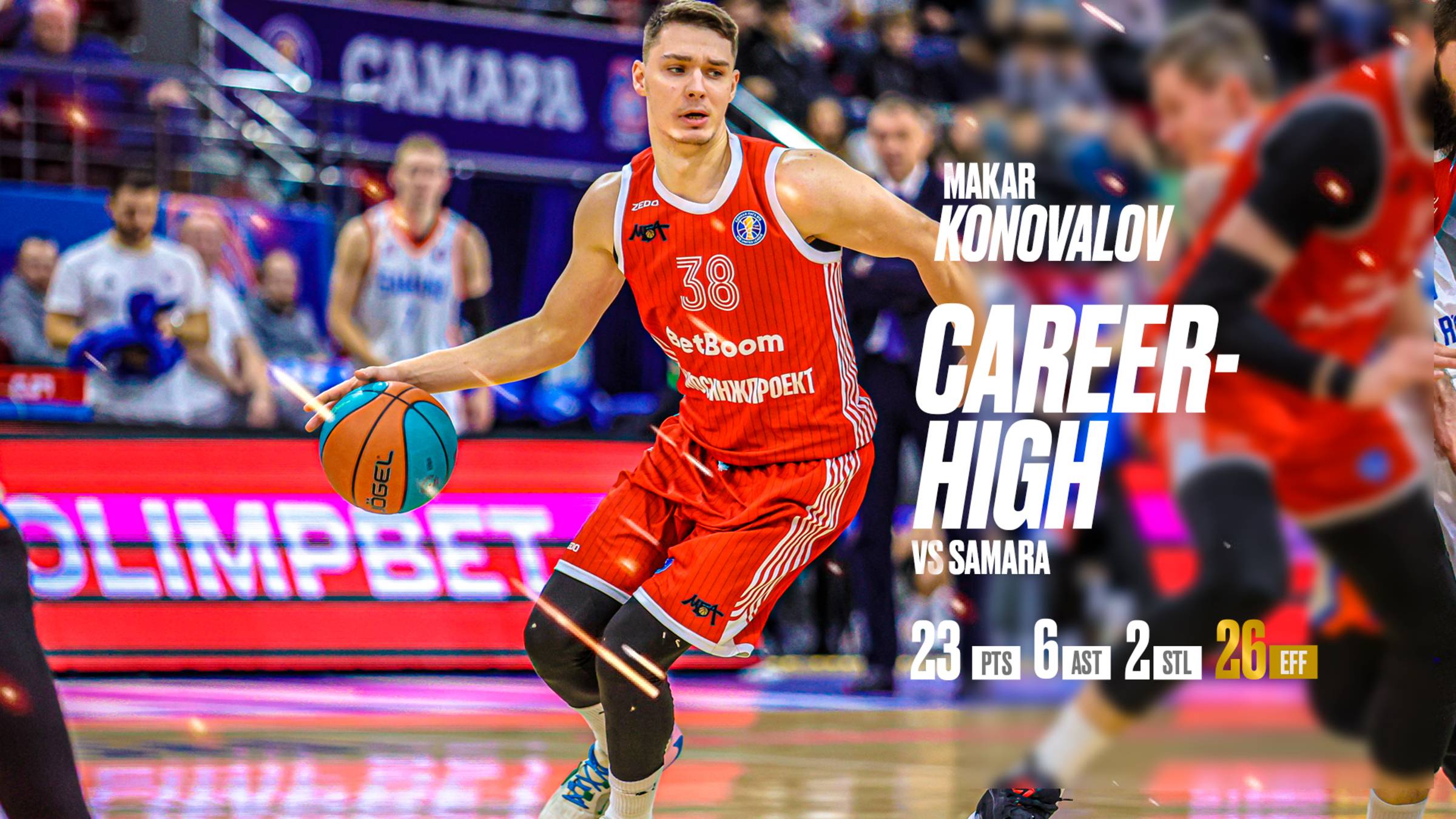 У Макара Коновалова – лучший матч в карьере! 🤩 В сегодняшней встрече против «Самары» (80:78) разыгрывающий МБА-МАИ забил решающие очки и установил личные рекорды по результативности и эффективности! 🔸 23 очка 🔸 6 передач 🔸 2 перехвата 🔸 26 баллов эффективности Помог московской команде одержать вторую победу подряд 👏