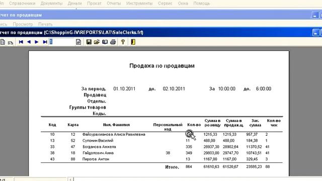 отчет по чекам и по официантам