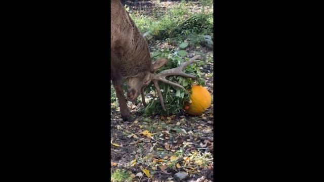 Его сотрудники зоосада угостили тыквой, фаршированной ароматным хлебом и сладкой морковкой. Василек с удовольствием полакомился угощением.