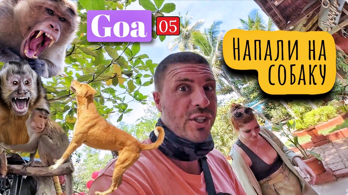 Индия - Обезьяны нападают на собаку, водопад