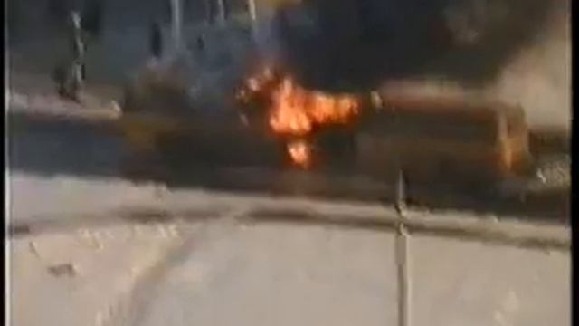 Автобус полностью сгорает. Пожарные приезжают и не тушает. Москва, 90-е, Ясенево, 642.