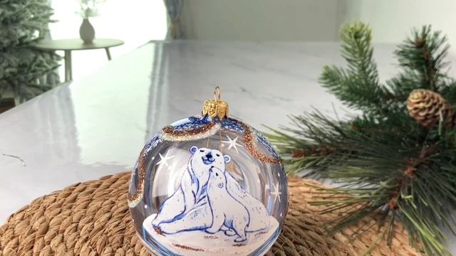 Стеклянный ёлочный шар ПОЛЯРНЫЙ, расписной, 95 мм, С2254