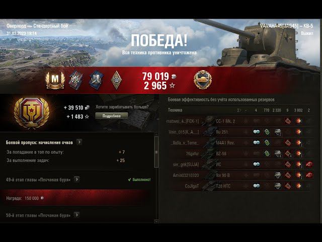 World of Tanks - Бой: Оверлорд Техника: КВ-5 Знак классности «Мастер»