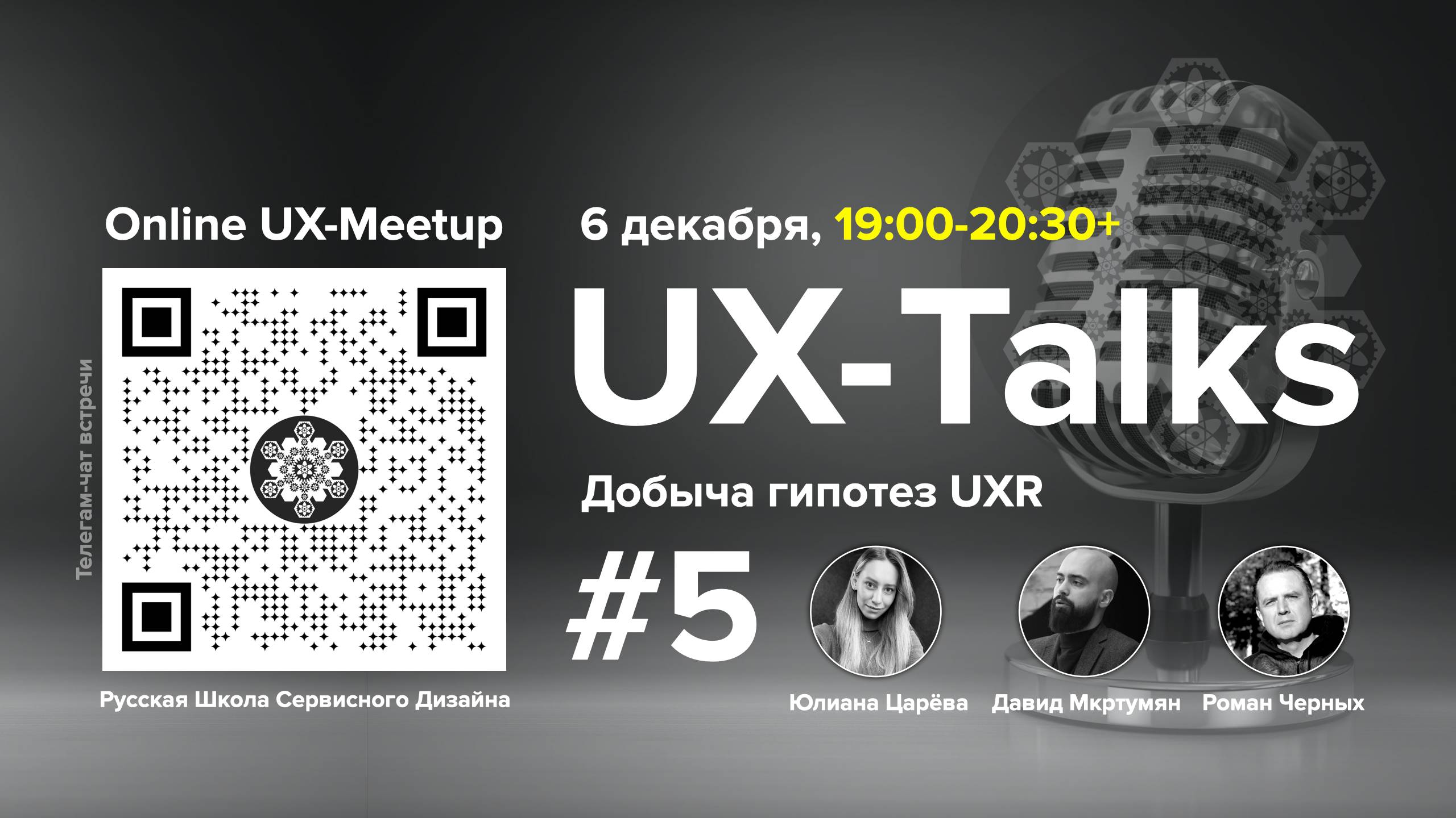 06 декабря (среда), 19:00-20:30 (МСК): UX-Talks, Online meetup, #5. Как добывать гипотезы UX-исследований, Юлиана Царёва (Одноклассники), Черных Роман (РШСД), Давид Мкртумян (Авито). Бесплатное онлайн-мероприятие для комьюнити «Русская Школа Сервисного Дизайна» и её друзей про проблематику поиска и формулирования исследовательских гипотез для изучения пользовательского опыта. * Что такое гипотезы и почему они важны для UX-исследований. * Откуда берутся гипотезы. * Какие бывают гипотезы. * Как правильно сформулировать гипотезу. * Составляющие хорошо сформулированной гипотезы. * Интерактив, тренировка формулирования гипотез. Расписание встреч и регистрация на UX-Talks : https://rsds.timepad.ru/event/2600879 Телеграм-чат встречи: https://t.me/RussianServiceDesignSchool Телеграм-канал анонсов: https://t.me/RSDS_UX
