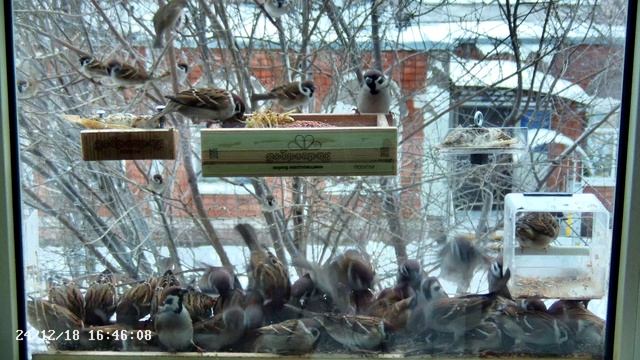 Воробьи в кормушке -