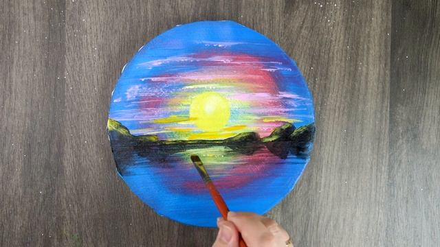 Красивый закат на озере! Акриловая живопись для начинающих