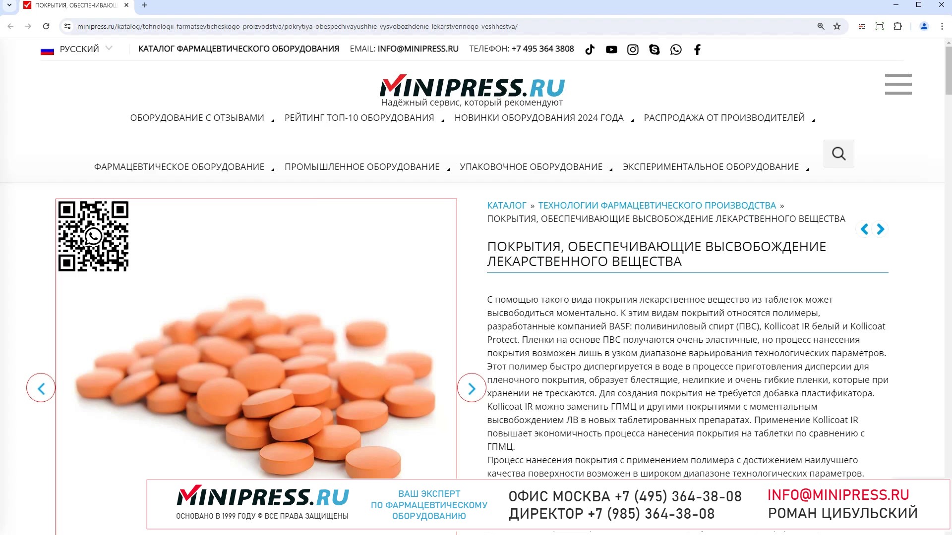 Minipress.ru Покрытия, обеспечивающие высвобождение лекарственного вещества