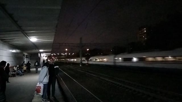Сдвоенный "Сапсан" проходит станцию Химки