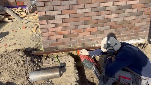 Сверлим отверстие в фундаменте под канализацию