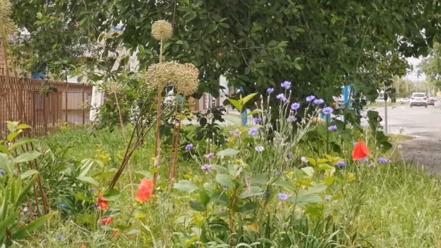 Цветочная клумба после дождя
