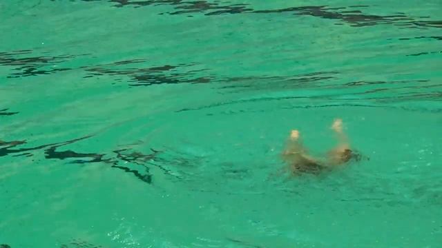 Красавица веселит зрителей своим купанием.