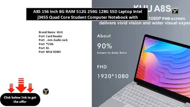https://s.click.aliexpress.com/e/_dVlDteH A8S 156 inch 8G RAM 512G 256G 128G SSD Laptop Intel j3455 Quad Core Student Computer Notebook with Brand Name KUU Port Card Reader Port . mm Audio Jack Port *USB. Port RJ- Port Mini HDMI Video Memory Capacity Main memory allocated memory Display Size .\ Display Ratio Screen Refresh Rate Hz Dimensions (WxHxD) **mm Hard Drive Capacity GB Weight (Battery Included) .Kg-.Kg Hard Drive Type SSD Item Condition New Operating System Windows Model Number AS notebook Graphics Card Model Intel HD Graphics Type Laptop CPU Brand/Model Intel Celeron J Panel Type TN Optical Drive Type None Average Battery Life(in hours) - hours RAM GB Body Material Plastic Package Yes Thickness mm-mm Display resolution x Graphics Card Type Integrated Card Bluetooth Camera TF Card Slot yes Hard Disk /GB SSD Style Ultraslim for game gaming laptop Audio and Video AAC MP WMA WAV MA MP AVCHD Image PNG JPEG GIF BMP Ship From Russian and EU warehouse Model pc portable Function portatiles ordenador Function ordinateur portable Function computador Function ordenador portatil Hard Drive Capacity GB or GB or GB https://s.click.aliexpress.com/e/_dVlDteH