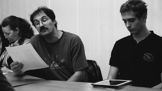 «Анды — как Анды, Ока — как Ока…» Маша Гескина Утром встаешь — морок и тьма криво висят в окне. Это не мир сходит с ума — ум изменяет мне: мозг не включается, мысли сбоят, жизнь цедит в ухо утренний яд и достает вполне. Утром встаешь — свет и покой, пыль в янтаре луча, словно Господь белой рукой гладит безумных чад. Как под бесплотной ладонью святой звоном заходится легкий, пустой чан на твоих плечах! Утром встаешь… Нет, не встаешь — в морду будильник бьешь. «Ерш твою медь! — думаешь. — Ерш…» — но ощущаешь брешь в сонной кулисе, и в эту дыру с детства трубят и горнят поутру: «Надо! Вставай! Поешь!»… Надо? — встаешь. Завтрак? — жуешь. Время идти? — идешь в вечный долбеж, в мерный галдеж, в липкий дневной елей. «анды-каканды, акакакака…» Боже, помилуй меня, дурака, белой рукой своей! Съемка 10 октября 2013 года в Санкт-Петербургском "Доме писателя" на заседании ЛИТО под руководством Вячеслава Лейкина