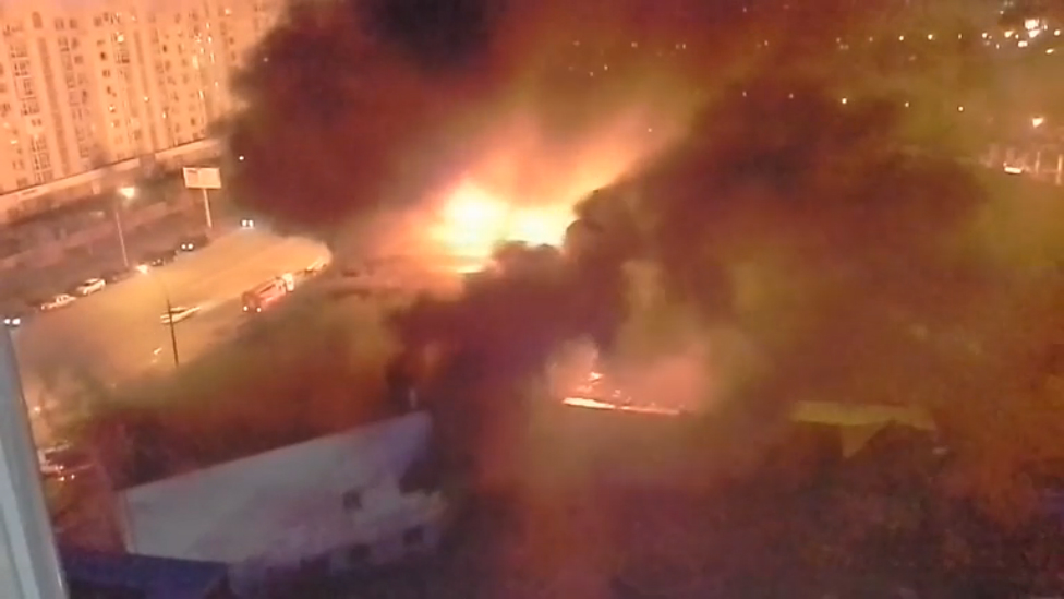 Новосибирск. Сгорел авторынок Горский (12.10.15 г.)
