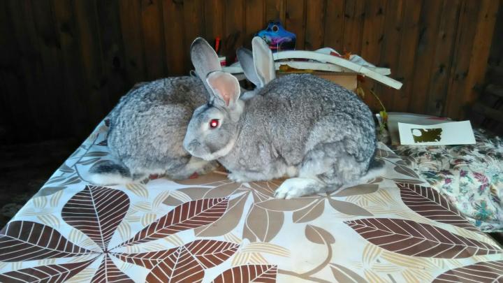 Кролики породы серебро. Кролики едят колючки. Кролики начинают окрашиваться.